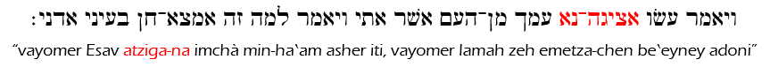 Il coniatore di questa teoria associa le parole di Esaù “atziga-na” con la designazione generale per gli zingari in alcune lingue europee (Aθίγγανος, Цыга́н, Cigány, Tsigane, etc.), quando in realtà non vi è alcuna connessione oltre all’assonanza. L’espressione pronunciata da Esaù è generalmente tradotta come “permetti che io lasci” –con il significato di presentare, stabilire, sistemare–, e riguarda alcune persone che egli aveva con sé e che suggerisce di lasciare a suo fratello Giacobbe. È su questa sola affermazione che si fonda l’intera teoria, che ipoteticamente collegherebbe Esau al popolo zingaro. Evidentemente, tale associazione è linguisticamente ridicola e priva del minimo sostegno scritturale.